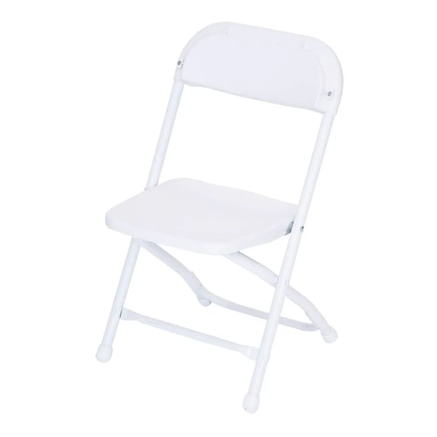 Kid-sized white folding chair designed for children’s parties, classrooms, and activity areas.